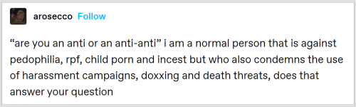 i wont fight anyone on this, proship/anti-anti/whatever the heck people are calling it makes me very uncomfortable so i'd appreciate it if you just didn't interact with me!
